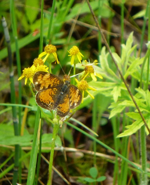 Ragwort June 16, 2016 513 × 631 Ragwort A Pearl crescent butterfly (Phyciodes tharos) feeds on ragwort (Packera aurea) that grows along river shores and wet areas. Photo by J. Lundgren, NYNHP.