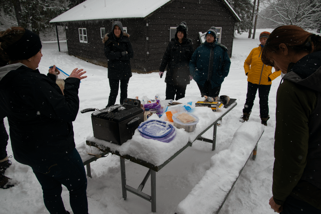 The second half of the trail traverses the south side of the ridge, through beech and maple forests and into a meadow. Depending on the time of the year, hikers may get to sample low bush blueberries or wintergreen growing in this area. The last section has a short, steep incline that adds a bit of challenge. Bear Paw ends at the Summit Warming hut.