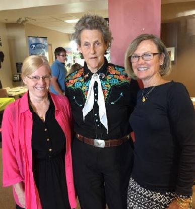 Autism advocate Temple Grandin (center), meets with Loren Penman (left) and Gail Serventi (right).