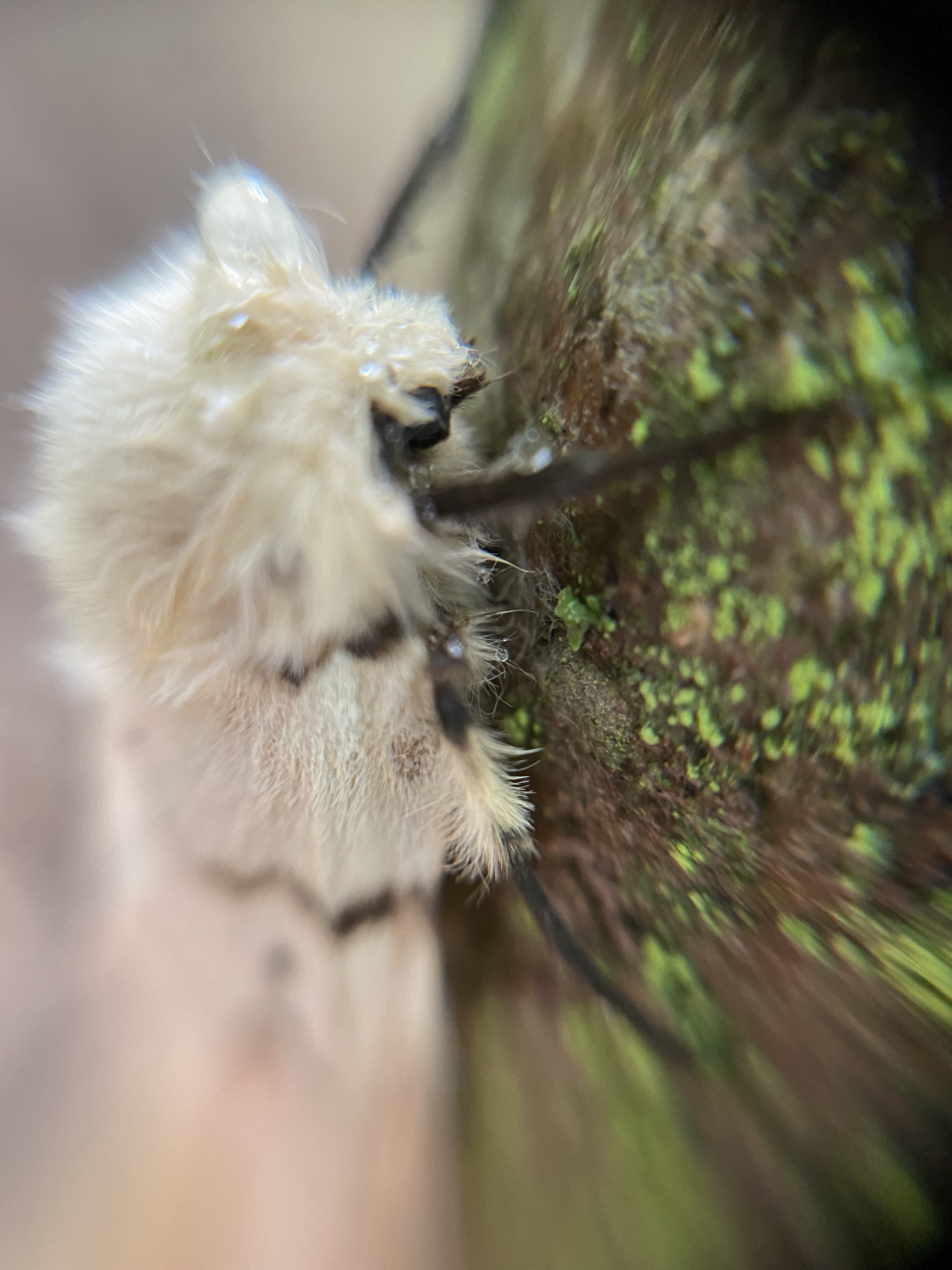 In the adult stage L. dispar moths are not destructive at all, as they do not eat anything (no digestive system) and only live for a few days. The white fluffy females have pretty wings used for decoration rather than flying, and release a hormone into the air for male moths to find them. Females remain on the sides of trees as the males fly in search of the females’ scent.The female will lay fuzzy egg masses on whatever surface she’s near and the life cycle will begin again.