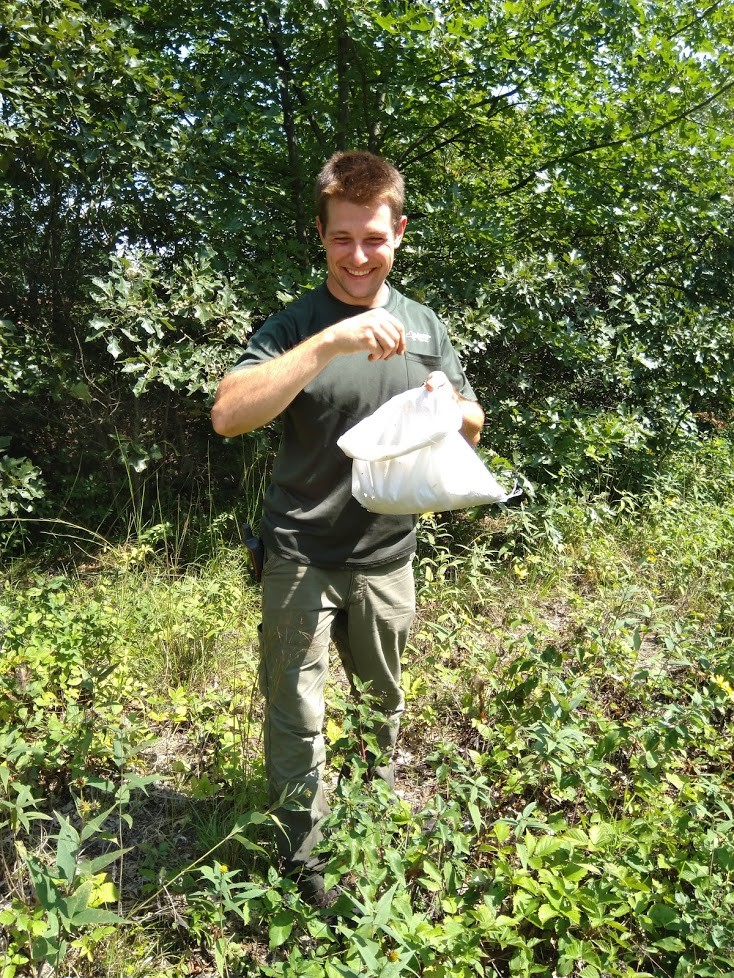 When the members of the ECC arrived, they were informed they would be participating in the Parks’ annual wild parsnip picking day. Each year the staff members from the Environmental Field Office dedicate one day to pick as many wild parsnip plants as they can in hopes of clearing out fields and minimizing the possibility of more growing in the future. Everyone was instructed to wear long sleeve shirts, pants and gloves in order to protect their skin. Starting early in the morning, the group of 10 ECC members joined forces with six State Parks’ staff to venture out into the fields of wild parsnip. Throughout the day everyone hiked through trails and sections of the property, pulling the plants out and piling them up they could be removed from the area. The members were instructed to get as close to the ground as possible to pull the roots up by hand. After walking through 30 acres of fields, the total tally of plants removed came out to be 13,439!