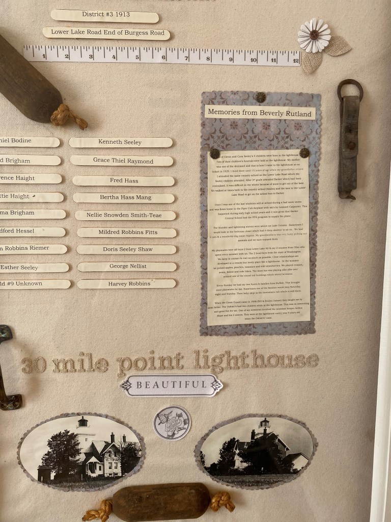 In her handwritten note cards, Beverly recalled the family doing its laundry in a washtub that was originally a copper boiler, and initially having no inside bathroom, only a privy that was cold in the winter. They later got the first inside toilet and telephone in town. She wrote how the children of the assistant keeper, who lived there in a separate residence with his family, taught her how to “swim and fish and play cards.” And that she was so afraid of the massive lightning storms that would cross the lake that she would hide in a closet under the stairs until the crashing passed.