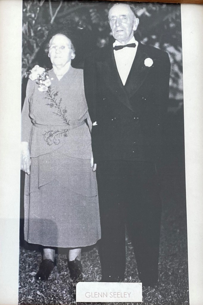 The picture to the left shows young Beverly with her grandparents, Glenn and Cora Seeley. Shown right is Beverly with her husband, Richard.