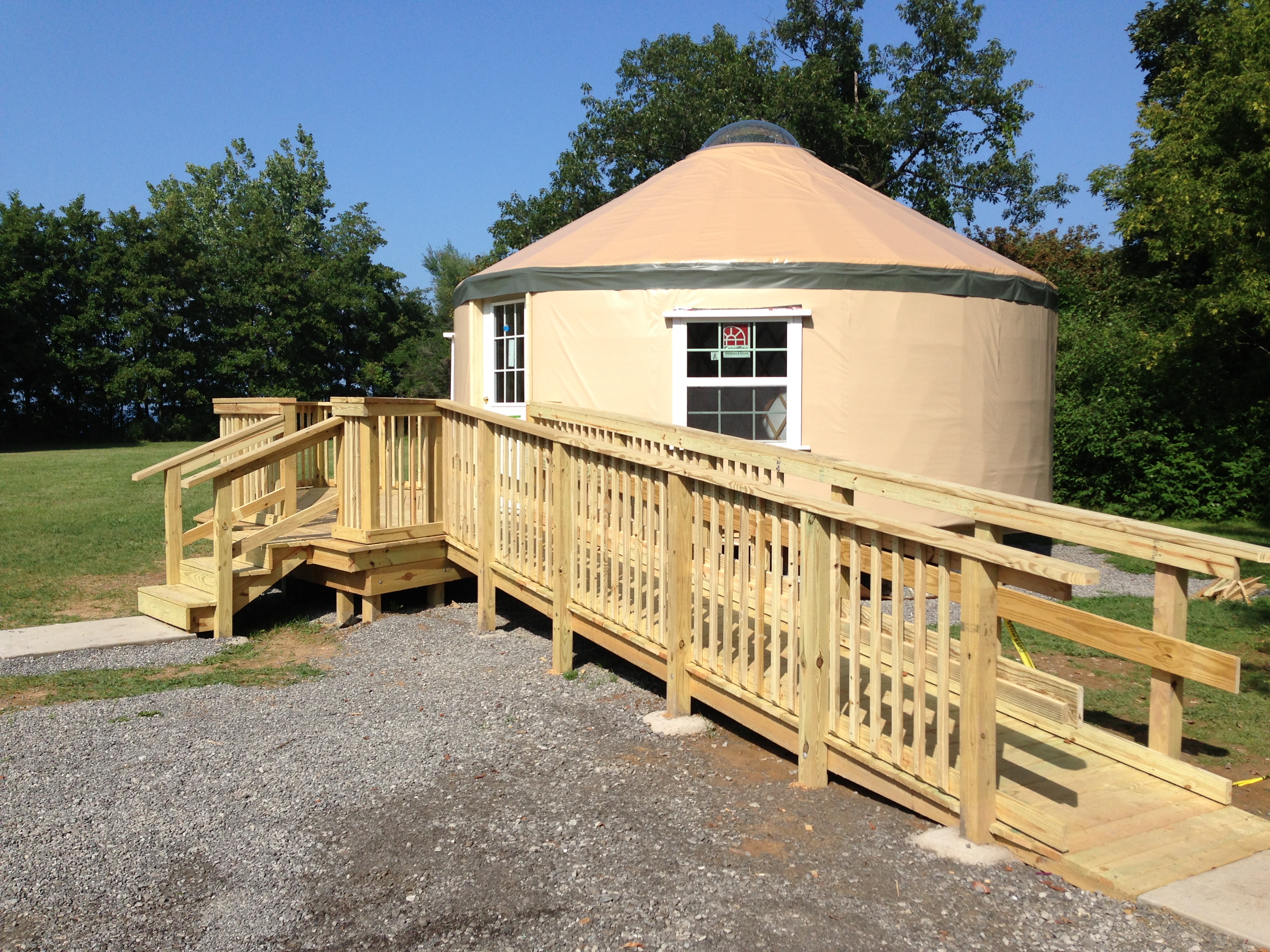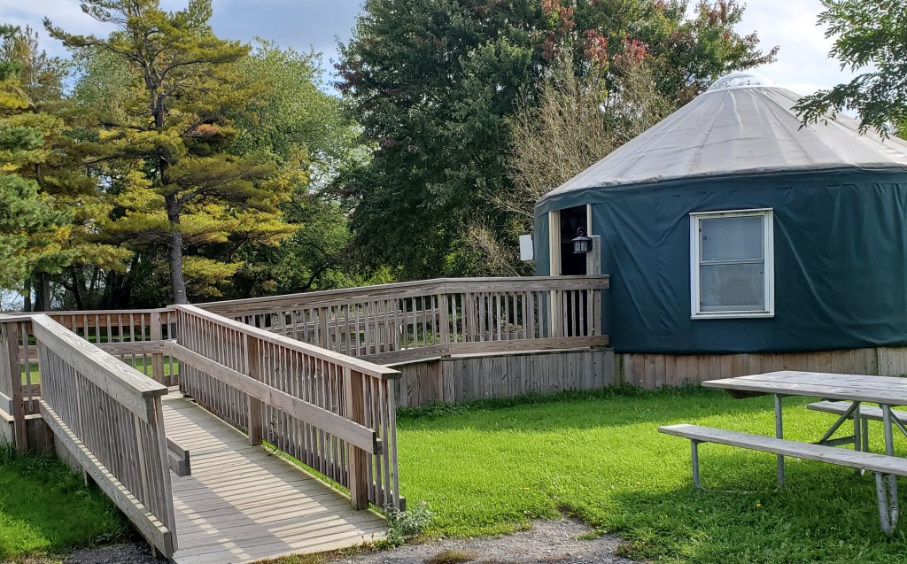 A yurt at Four Mile Creek State Park with an ADA accessible ramp.