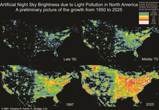 According to the National Park Service, nighttime light pollution in the U.S. has gotten much worse in decades after World War II, so much that now eight in ten Americans can no longer see the Milky Way. And this is an increasing issue for migrating birds.