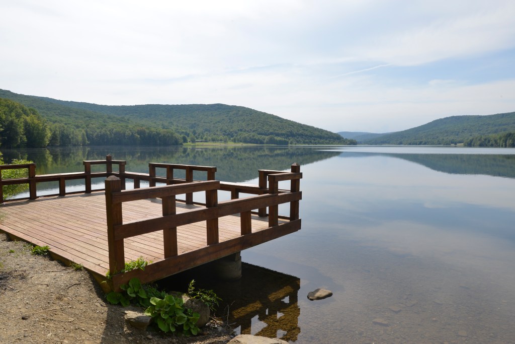 The Quaker Run Area has two lakes, 189 campsites, 230 cabins, 37 full-service cottages, two group camps, many miles of hiking trails and horse trails, swimming at Quaker Lake, a boat launch at the Allegheny Reservoir, which has 91 miles of shoreline and is popular for boating, fishing, kayaking and waterskiing. Named for Quaker missionaries and settlers who came to the area in 1798 at the invitation of Seneca Chief Cornplanter to assist with agriculture and education.