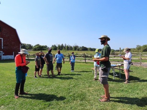 Cover Shot- BioBlitz participants practice COVID safety protocols.