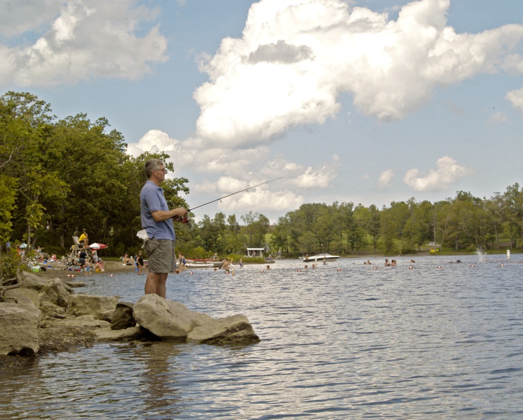 Fishing is only one of the activities available at Thompson’s Lake. Featuring 140 campsites, the park also has volleyball court, horseshoe pits, a playing field, swingsets, carry-in boat access, canoes, kayaks, and stand-up paddleboards, fishing areas, and nature trails. The lake is open for ice fishing in the winter.