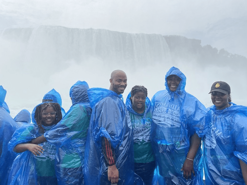 A group of adults and children experience the Maid Of The Mist at Niagara Falls through the Ladders to the Outdoors program.