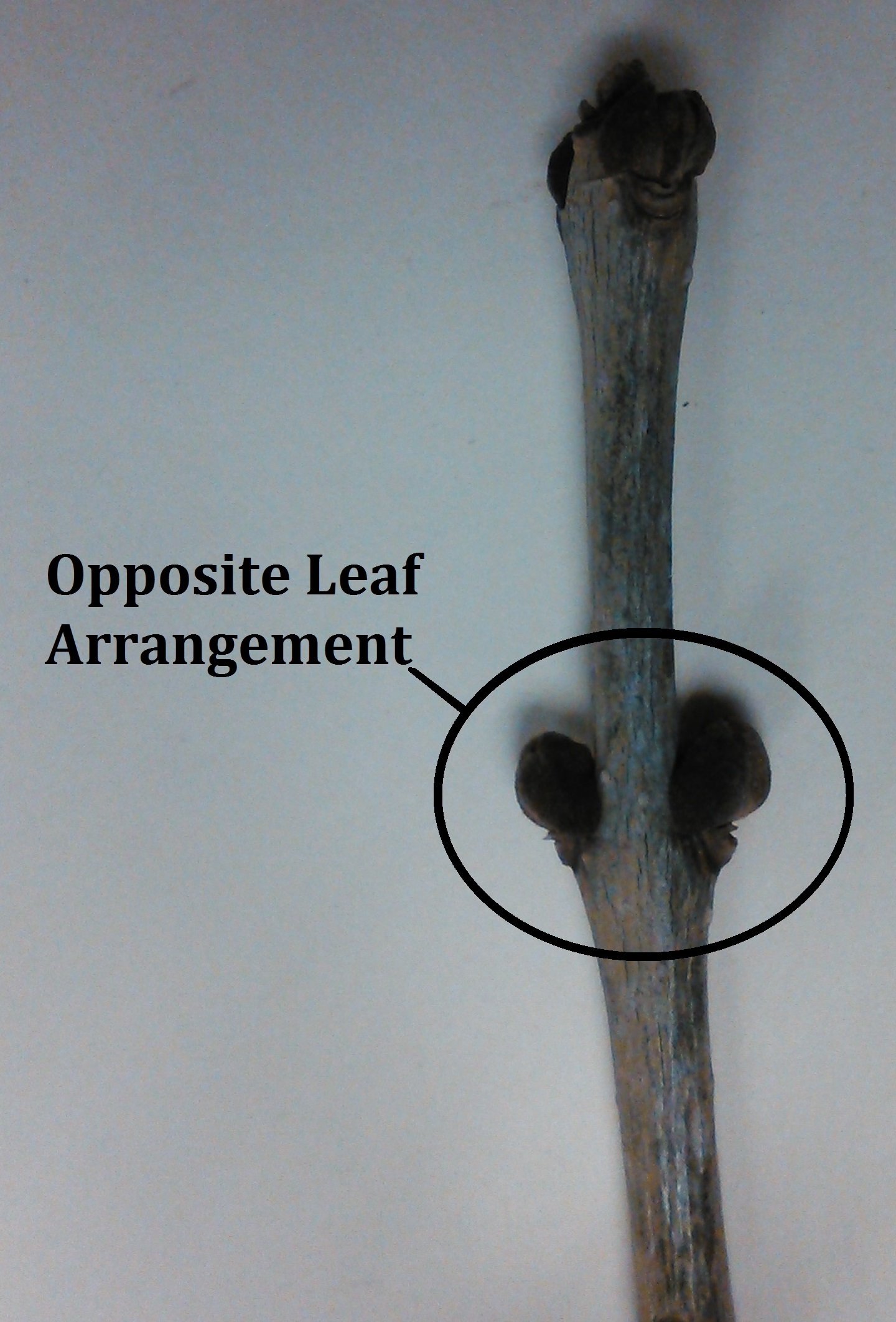 We will start with leaf or bud arrangement on the stem which will be either “alternate” or “opposite”. The buds are where next year’s leaves will emerge from and the nodes are where the leaf or bud attaches to the stem.