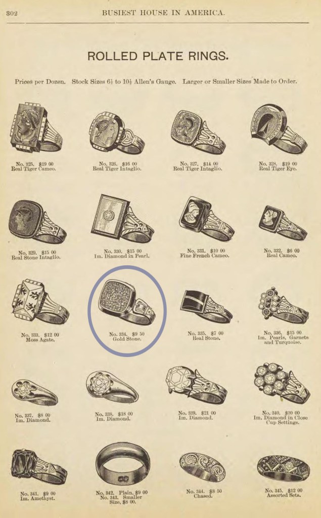 “First, we identified that stone in the ring was goldstone, which is actually glass with coppery flecks in it,” said Amanda Massie, curator of the Bureau of Historic Sites, based in Waterford. “To date the ring and thimble, I used historic trade catalogs from the 1880s and 1890s _ both jewelry catalogs and stores such as Sears Roebuck and Montgomery Ward to see if they had any items of the same style.”