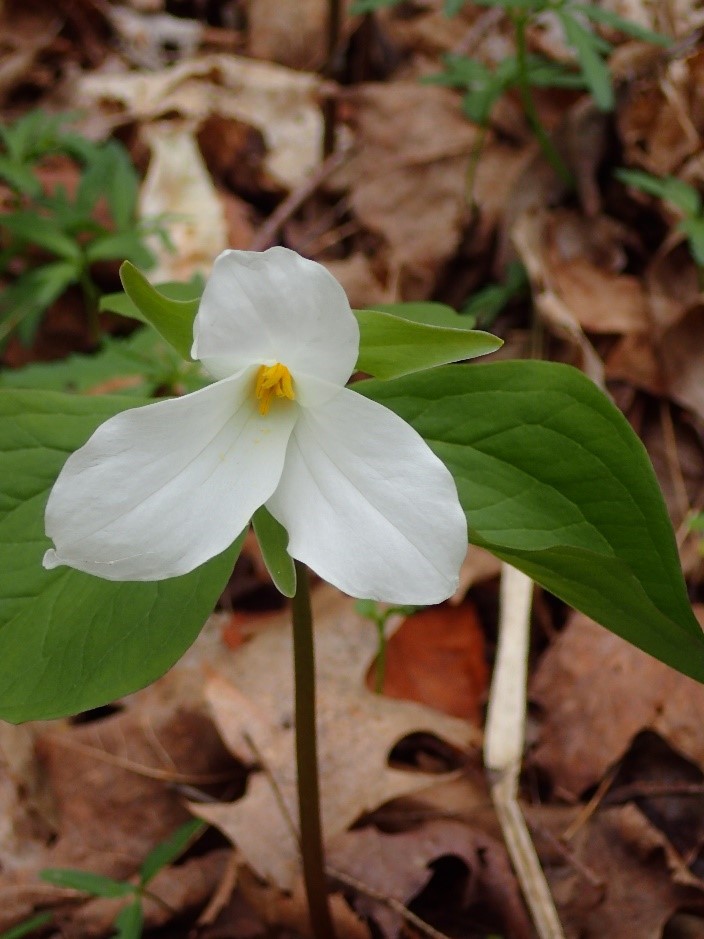 This trail is best known for its spring wildflowers; especially trillium. New York’s largest flowered trillium, the white trillium, blankets the forest floor in May. The name trillium refers to three, the number of leaves, sepals (bud covers), and petals.