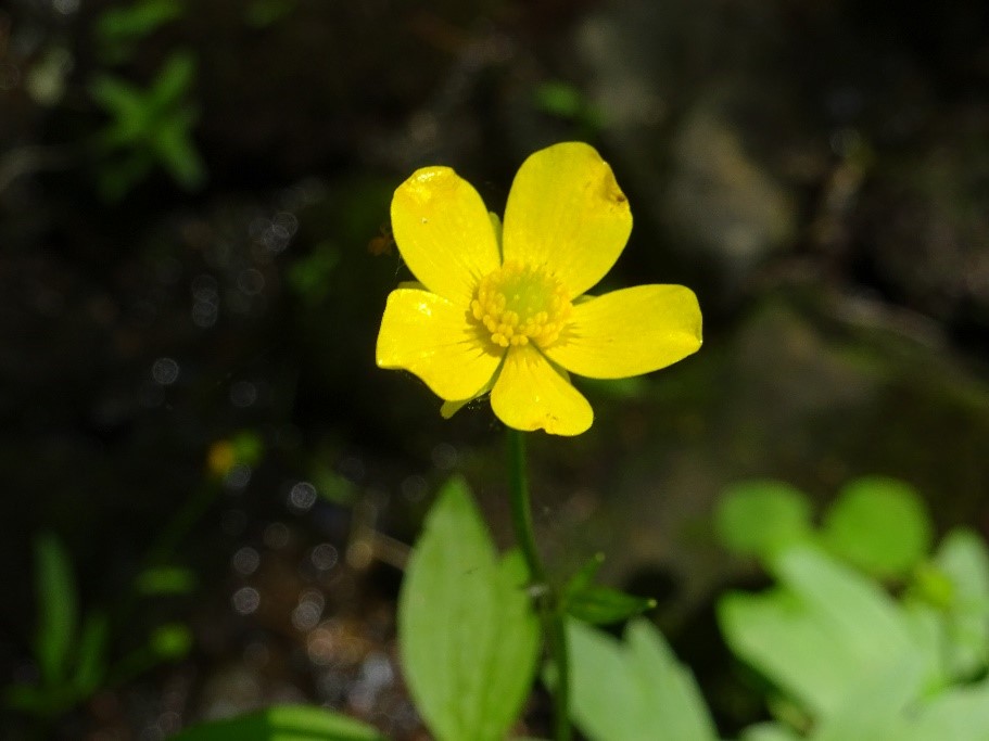 An easy flower to recognize is the buttercup (Ranunculus sp.). These grow in the woods, meadows, tall lawns, or in streams and wetlands. There are many species of buttercups but all have five shiny yellow petals.