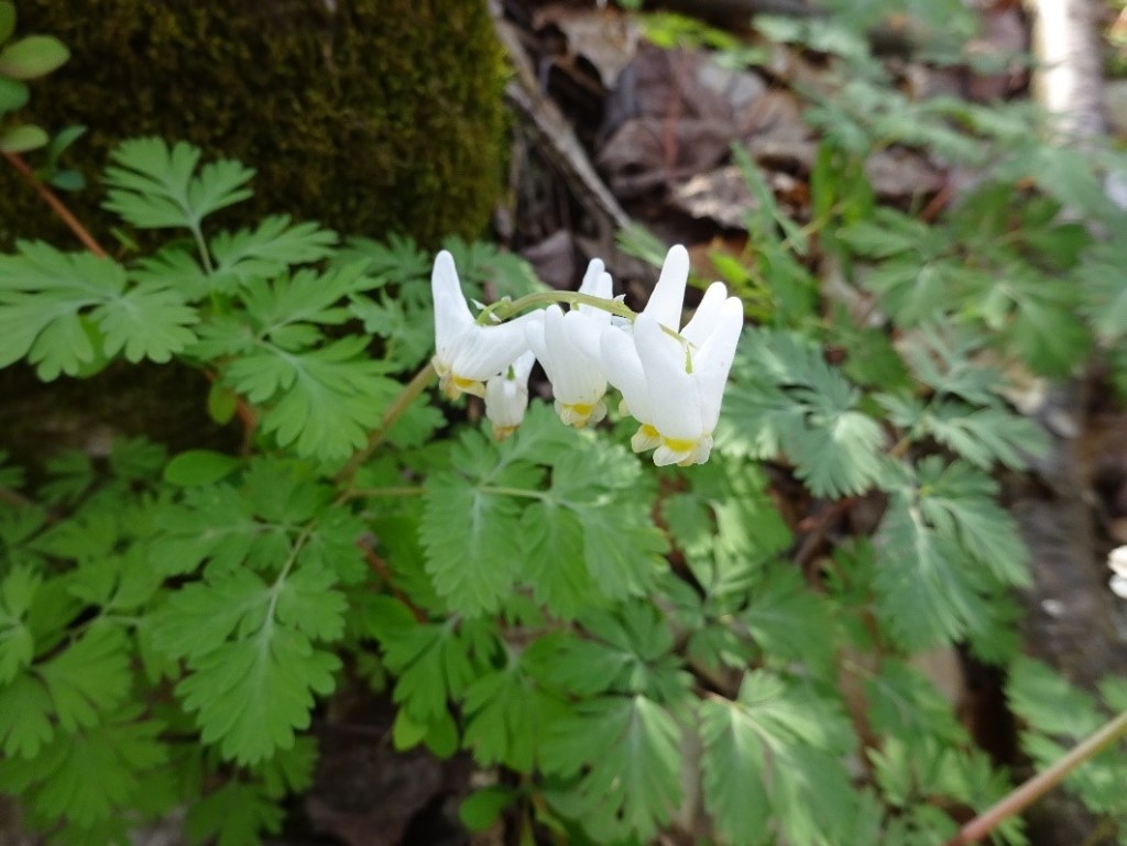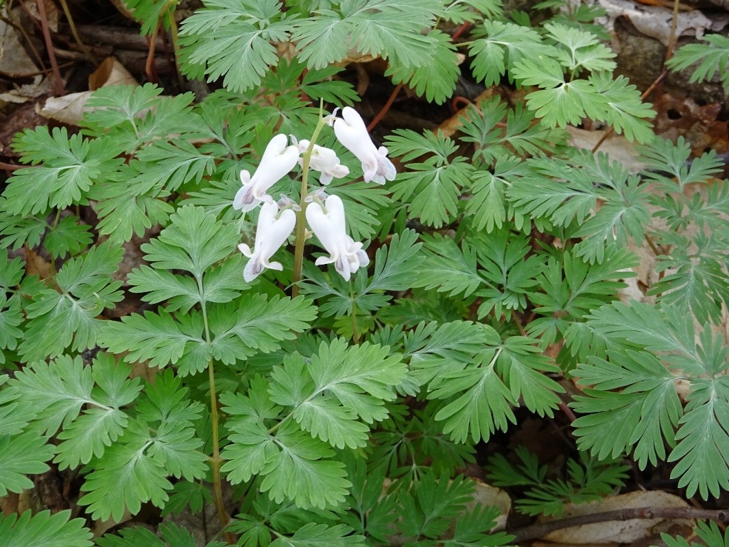 Dutchmen’s breeches (Dicentra cucullaria) look like upside-down bloomers. They occur in moist woodlands, often more calcareous sites and sometimes in large colonies.
